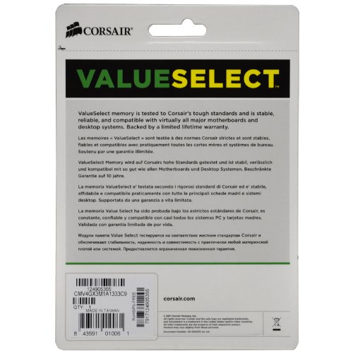 Corsair 4GB (1x4GB) DDR3 1333 MHz (PC3 10666) Desktop Memory 1.5V
