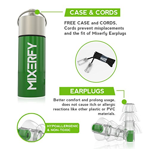 -. Title : Mixerfy Earplugs Noise Protection For Concerts, Musicians - FREE CORDS, CASE, GIFT with Each Order - Noise Cancelling Hearing Protection Ear Plugs