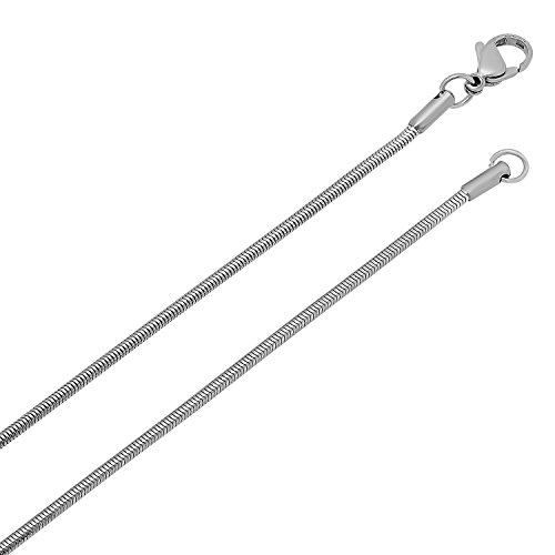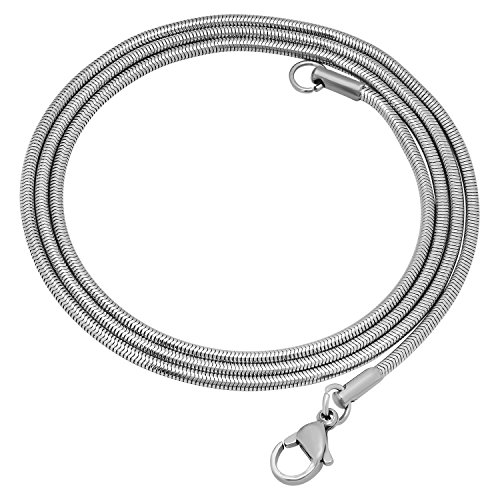 -. Feature : BONUS POLISHING CLOTH & VELVET POUCH - Includes a complimentary black velvet jewelry pouch and a dual-layered premium quality microfiber jewelry polishing cloth along with an instruction guide on how to clean, buff, protect & maintain a brilliant shine on your jewelry / POLISHED & DURABLE - This high polished stainless steel snake necklace is 1.8mm wide (1.8mm thick) that fastens with a sturdy oval lobster clasp / CLASSIC & TIMELESS - its flexible smooth curved plates, tightly joined together forming a continuously solid yet flexible tube design with a subtle zigzag effect complement any look with a lustrous shine perfect to be worn solo, stacked or adorned with a charm / QUALITY CRAFTSMANSHIP - constructed of anti-tarnishing, scratch-resistant stainless steel, this chain features a non-plated finish that is luminously polished to a radiant shine / ORDER WITH CONFIDENCE - Backed by a Lifetime Warranty against all manufacturer defects in material and craftsmanship