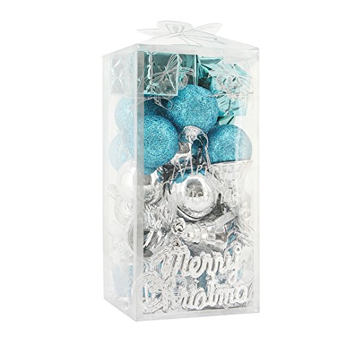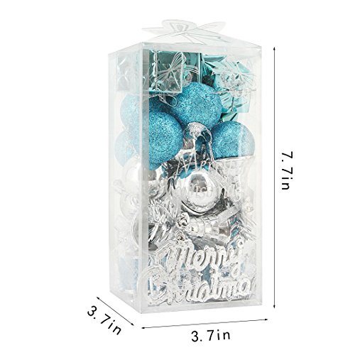 Novia's Choice 32 PCS Christmas Tree Hanging Decorations Sparkle Balls Pendant Oranments for Parties(Blue&Silver)