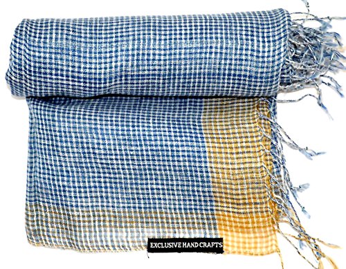 Binding : Apparel Product Description Handcrafted with the finest quality Hand-spun Linen Fabric (This Linen Fabric is made from hand-harvested Flax) available in India. Eye catching design and color combination. Very light weight and apt for any occasion. Chic design making it a perfect topper. The Tassels are Hand Knotted. Why you should by Hand-spun Linen or Cotton? - Completely natural with zero chemicals, so excellent for skin - Very unique as it is cool in summer and warm in winter - Absorbs water and dries quickly - Handmade hence texture gives a fabric feeling as against machine made. - Eco friendly, having the lowest carbon footprint - a sign of your lifestyle Only limited pieces are made, so you could be the exclusive owner of this luxurious scarf! Great color combination to make you stand out! Dimensions: 72*28 inches (Approx) 0