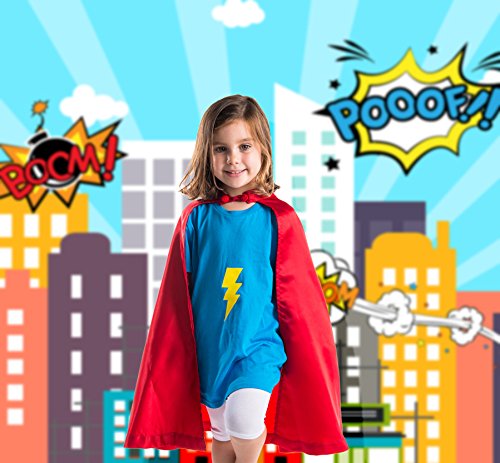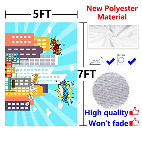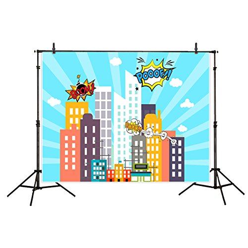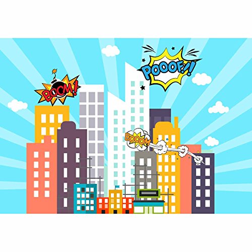 Allenjoy Polyester Photography Backdrops 7x5FT Comic Hero Super Modern City Superhero Theme Background for Children Birthday Party Decoration Photo Studio Photocall