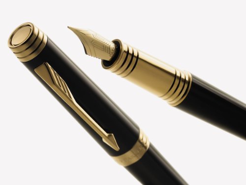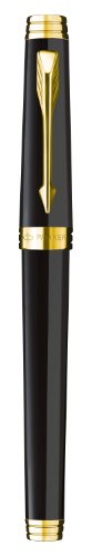 -. Title : Parker Premier Deep Black Lacquer with Gold Trim Medium Point Fountain Pen (S0887820)