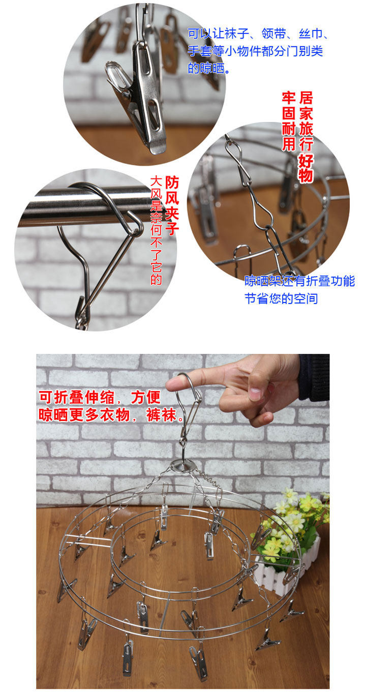 Name: Stainless steel thick multi-layer drying rack Material: Thick stainless steel Description: Stainless steel socks, socks, drying socks more peace of mind to save more clips to save a lot of space lanyard, a number of strong clips, so that the clothes will not be blown off in the above, all stainless steel production, not afraid of rust, than plastic Clothespins are more durable!