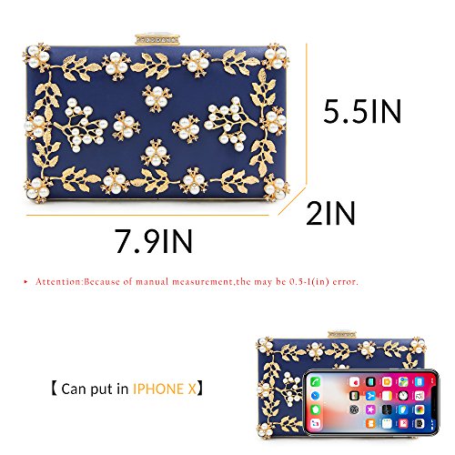 Feature: The stereoscopic flowers in the surface are combine of pearl beadeds, metal leaves and ornament rhinestones