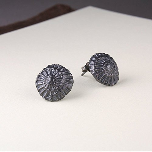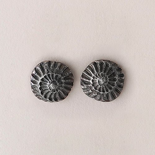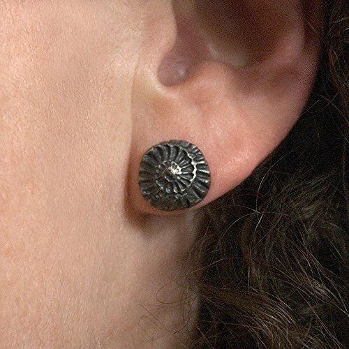 -. Title : 1/2" Ammonite Stud Earring, Sterling, Graphite Gray Finish