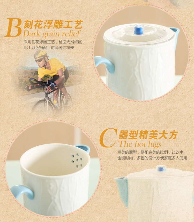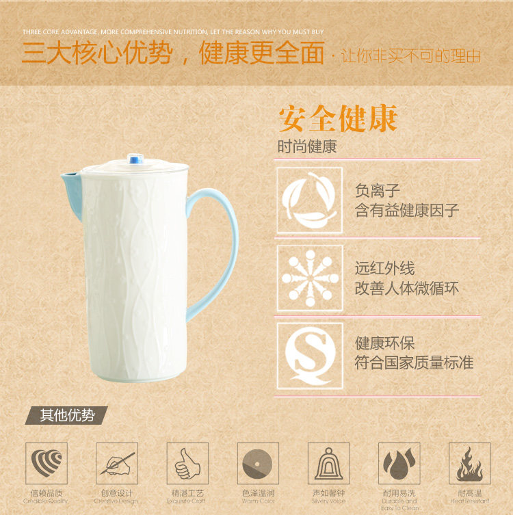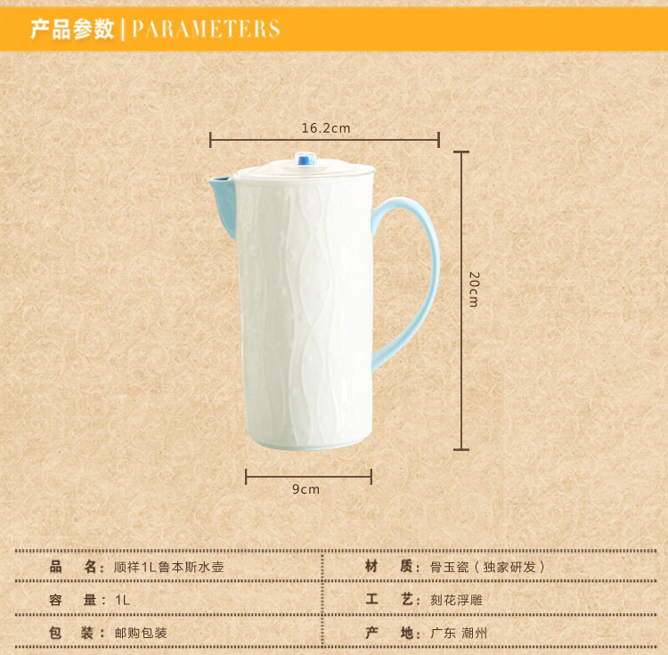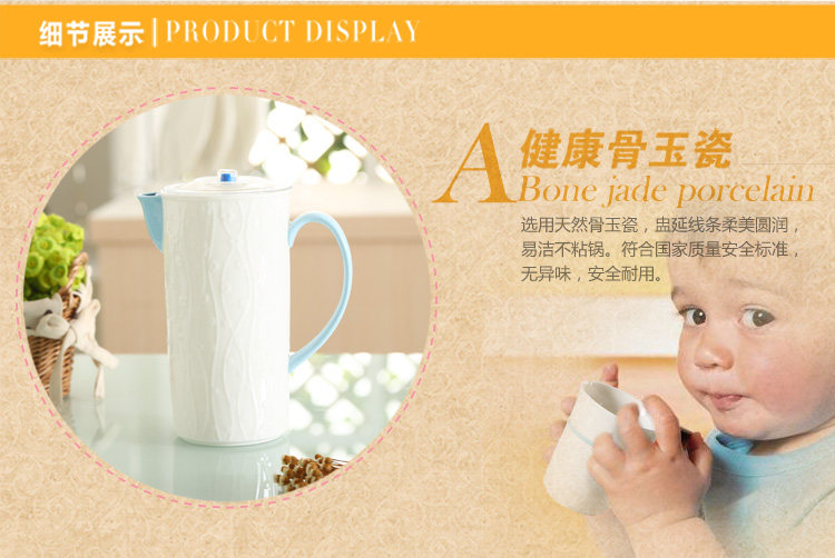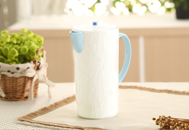 陶瓷水具 一升冷水壶纯白浮雕凉水壶大容量果汁壶耐高温