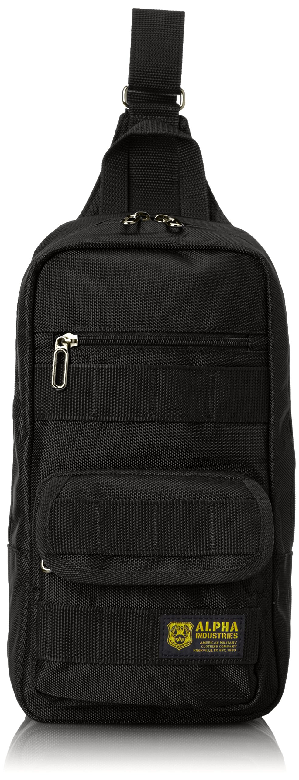 It is a vertical type body bag of Alpha Industries whose tape use is accented.