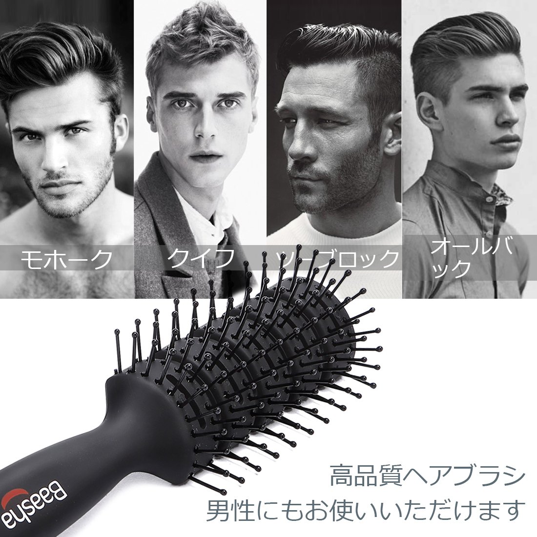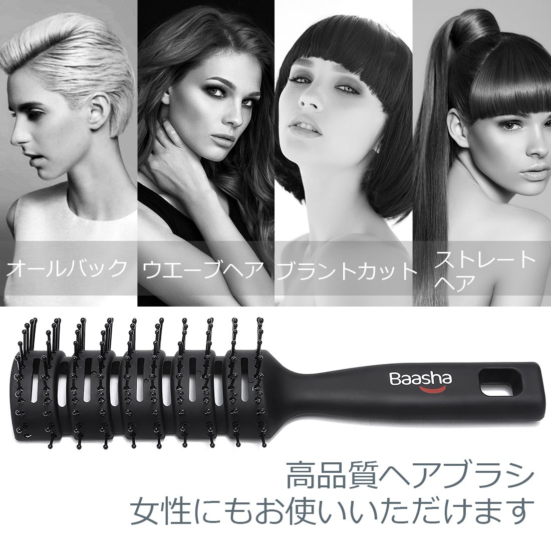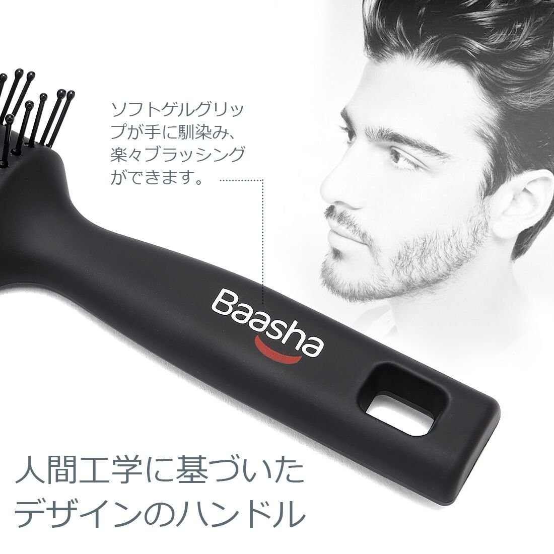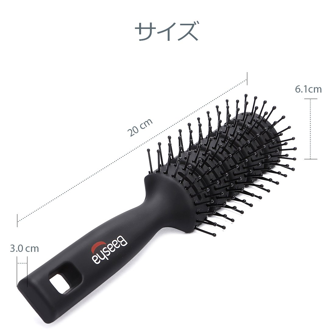 大きなトンネルパッドと何列もの球状の毛先が付いたバーシャヘアブラシは、濡れた髪用のウェットブラシ、男性用ヘアブラシ、マッサージヘアブラシ、ブロードライ用ヘアブラシ、髪のもつれ解消用のブラシ、ストレートブラシなど、様々な用途にお使いいただけます。