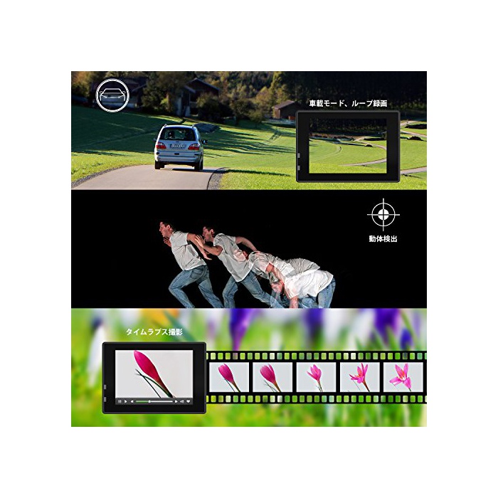 【30m방수 차량 탑재 모드 타임《라푸스》촬영】30m방수 케이스를 부속하고, 방진성 내충격 성내저온성도 확보 하고 있습니다. 차량 탑재 모드에 드라이브 레코더 오토바이 카메라로서도 이용으로 옵니다.화이트 밸런스,연사,룹 녹화,스크린 세이버&화면 회전,동신체검사지,손떨림 보정,타임《라푸스》촬영 등 다채로운 설정 기능을 탑재 하고 있습니다.