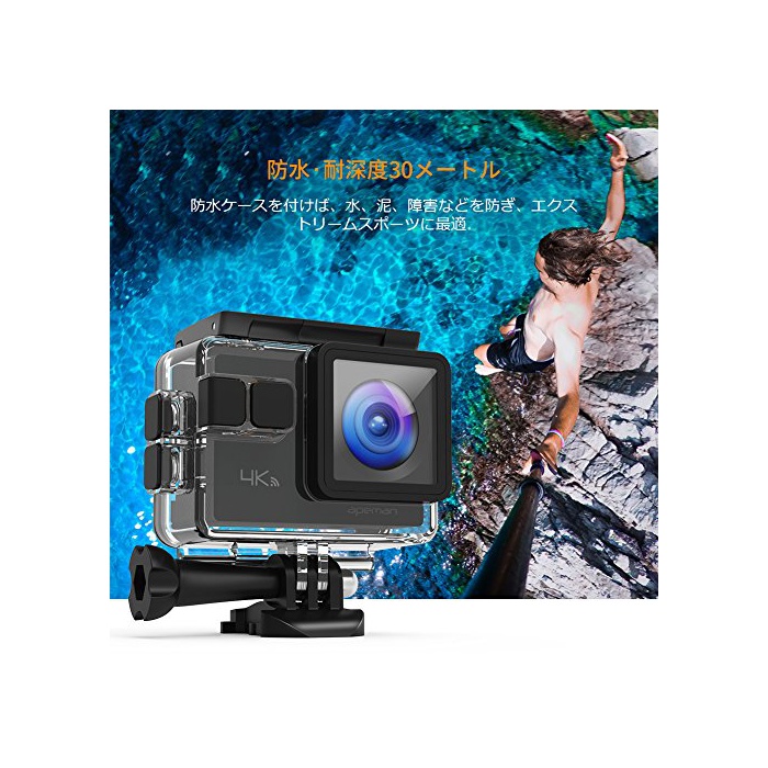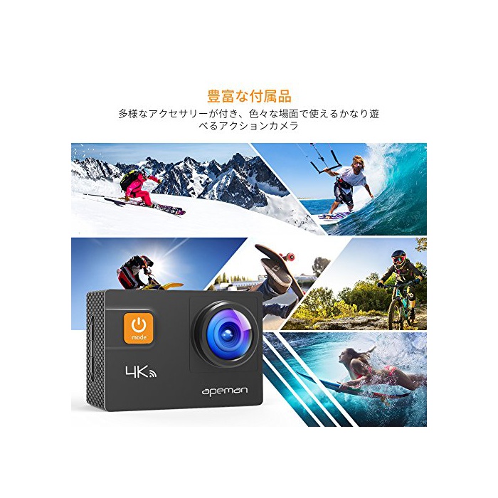 원본상품명: APEMAN アクションカメラ 4K WIFI搭載 2000万素 UHD 2インチLCD 角調整可170度角 30m防水 手ブレ補正 HDMI出力 スポツカメラ バイク/自車/車に取り付け可