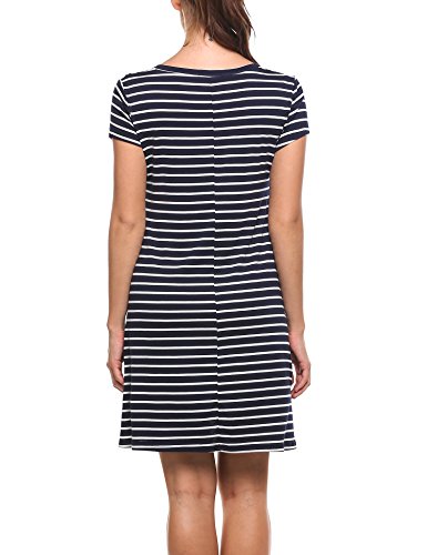 Feature: 3 Patterns, Stripe /Floral /Solid color, short sleeve, round neck, chest pocket, a line silhouette, above knee mini dress