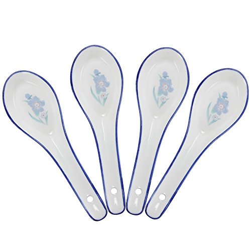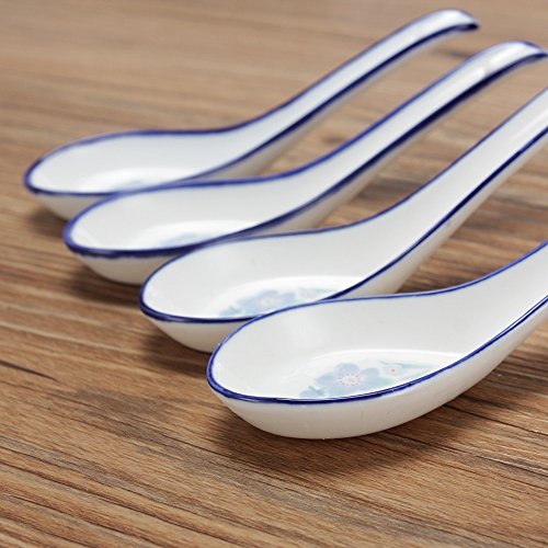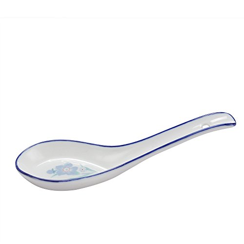 DAINTY DESIGN: Elegant flower glaze on the Asian soup spoons delight you when you use them for soup, rice, porridge, cereal, appetizers, wonton, Tong sui, pho, udon, ramen and other noodles. You could use the spoons comfortably and easily with their length of 5 inch and width of 1.7 inch.
