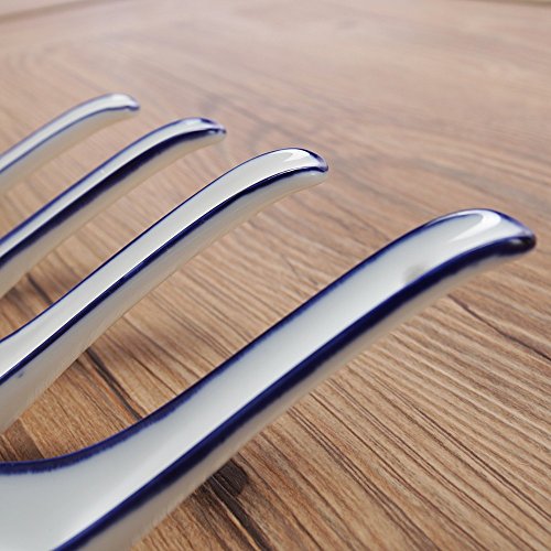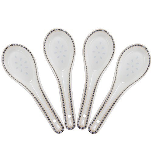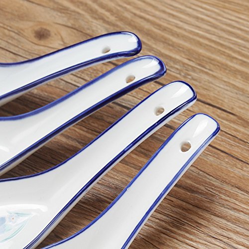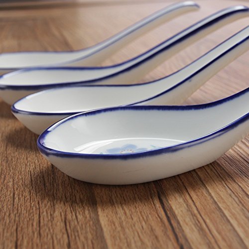 HAND PAINTED BLUE EDGING: The blue edging on these Chinease soup spoons set is all hand painting widely recognized as more valuable than uniform porcelain decal by porcelain industry. And the blue edging may change during porcelain firing. Thus, every one of these porcelain spoons is unique and not uniform to any other: some light and some dark.