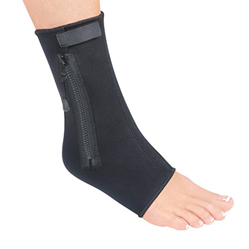-. Feature : Neoprene sleeve helps support your ankle and reduces swelling / Ideal for tendinitis, bursitis, muscle strains, ligament strains and more! / Provides relief with uniform compression and heat retention / Durable zipper pull with closed heel design / Size Medium fits ankle 9 1/2-10 1/2" and calf circumference up to 13" Color Black