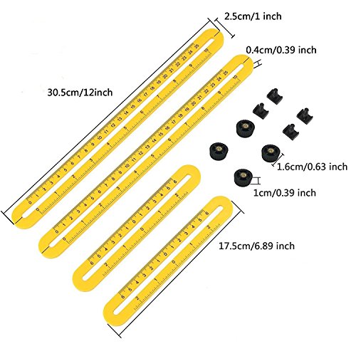 - Easy To Use: Just place onto your work area, slide the rulers into the shape needed, and tighten the screws. There you have your flawless measurement which can now be transferred and traced onto any material.