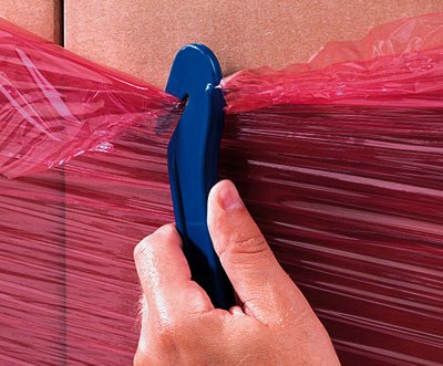 -. Feature : Lightweight, easy-to-use tool quickly cuts through stretch wrap, twine, bubble, and foam. / Recessed angled blade protects user and merchandise from accidental cuts. / High-impact, plastic housing/handle fits in pocket.