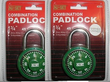 -. Brand : NuSet Lock -. Color : Green -. EAN : 0715590406216 -. Feature : 1 3/4" 45mm Green Combination Padlock Each Individually Packaged / Chrome Plated / Each padlock with its own 3-Digit Combination / Bumper Protected / Ideal for gym or school lockers. Secure most any gate or fence -. Label : 4062-1 -. Manufacturer : 4062-1 -. Model : 2 x 4351G-1 -. MPN : 2 x 4351G-1 -. PartNumber : 2 x 4351G-1 -. ProductGroup : Home Improvement -. ProductTypeName : SECURITY_ELECTRONICS -. Publisher : 4062-1 -. Studio : 4062-1 -. Title : 2 Pack of Green Combination Padlocks - By NuSet Lock -. UPC : 715590406216
