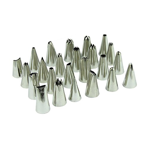 Product Description Features: 100% brand new and high quality Material: Stainless steel 24 different icing nozzles With this set, you can make a? very beautiful cake Fit for profession use or home? use The circumference of the? smallest nozzle is 5cm while the? largest is 7.4cm Nozzles vary in size but average? measurements (height x? circumference) are: 4 x 6cm. Specifications: Net weight: 234g Color: Silvery Packet content: 100% Brand New 1? x box of 24 Icing Set Nozzles 0