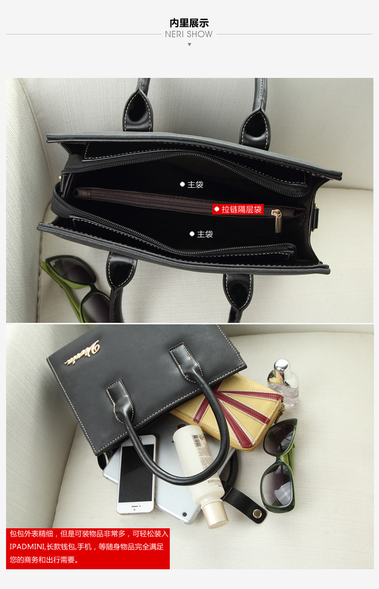 Bag dimensions: width 28cm, thick 10.5cm, height 21cm, portable 8.5CM, strap 50CM