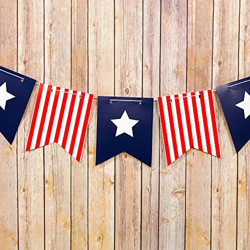 Pennant Count: 12 Pennants Pennant Patterns: Red, White and Blue with Stars and Stripes Twine Length: 11 Feet Guidon Pennant Dimensions: 6.25"W x 8"L 0