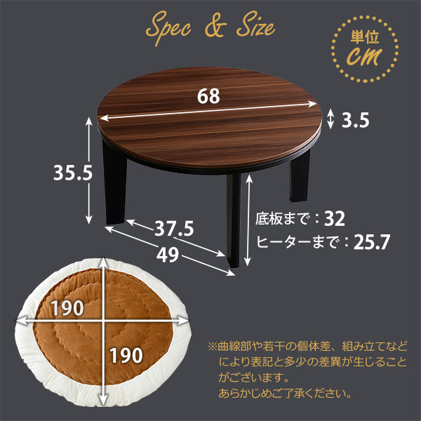 ●こたつ布団:直径190cm(許容範囲+5%・-3%)