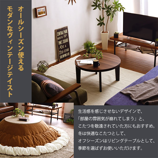 ●モダンなヴィンテージテイストのおしゃれなこたつとふわもこ布団のセットですぐに使える