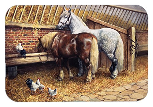 Caroline's Treasures BDBA0135LCB "Horses Eating with the Chickens" Glass Cutting Board, Large, Multicolor