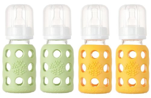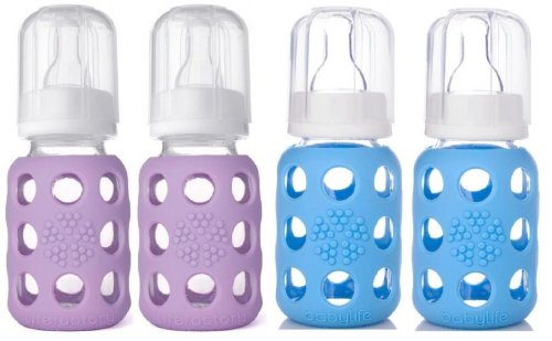 -. Binding : Baby Product -. Brand : Lifefactory -. Color : Clear -. Feature : Bright colored silicone sleeve (patent pending) helps to protect the bottle from breakage and provides a great gripping surface and tactile experience during feeding / Bottle and sleeve can be boiled or put in the dishwasher together / Bisphenol-A (BPA), phthalate, and polyvinyl chloride (PVC) free / Silicone sleeve is non-toxic and free of plastics / Silicone nipple is non-toxic and latex-free -. Label : Lifefactory -. Manufacturer : Lifefactory -. NumberOfItems : 4 -. ProductGroup : Baby Product -. ProductTypeName : BABY_PRODUCT -. Publisher : Lifefactory -. Studio : Lifefactory -. Title : Lifefactory Glass Baby Bottles 4 Pack (4 oz. in Boy Colors)