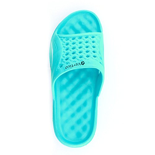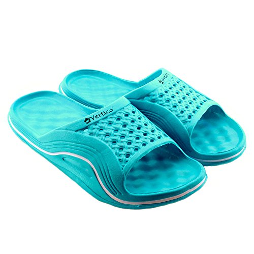 -. Binding : Apparel -. Brand : Vertico -. Color : Blue -. Department : womens -. Feature : Fast Drying / Non-Porous, Mildew Resistant Material / Great for Community Showers and Pools / Helps Prevent Transfer of Foot Fungus, Athlete's Foot and Worms from Shower Floors / Form Injected as One Piece with No Mildew Dwelling Crevices -. ProductGroup : Shoes -. ProductTypeName : SHOES -. Title : Vertico Slide-on Women's Shower and Poolside Sandal