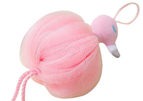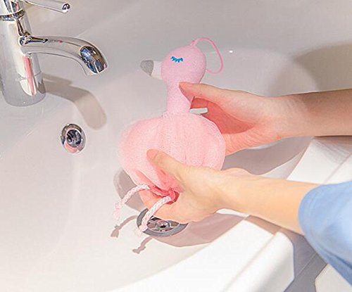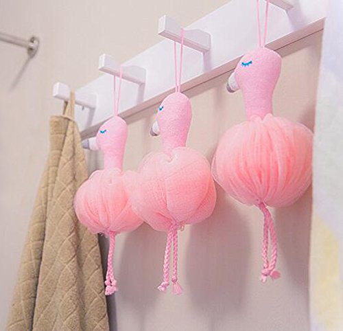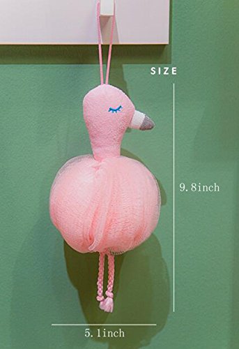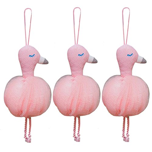 QHZHANG 3 Pcs Flamingo Bath Ball Bath Shower Mesh Pouf Sponge Set (Pink)