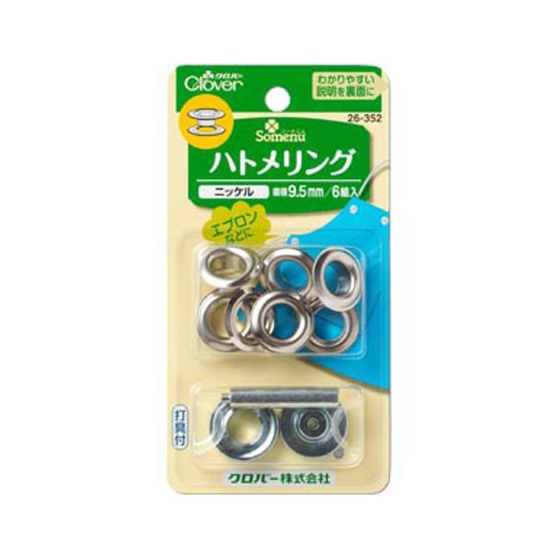 表面に丸いふちがついた仕上がりになるハトメです。ひもを通す穴などに。