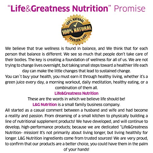 LET`S GET LIVING ANXIETTY RELIEF - As a family business, L&G Nutrition wants “Life & Greatness” for you, your family, for everyone. We have put a lot of efforts in creating our Anxiety control formula. Apart from relieving tension, this top notch stress relief and control supplement will help you support and maintain calmness and positive feelings. It`ll allow you to handle stressful life situations with ease so that you can enjoy every little moment in your life again.