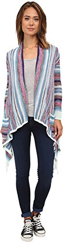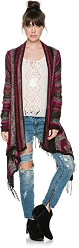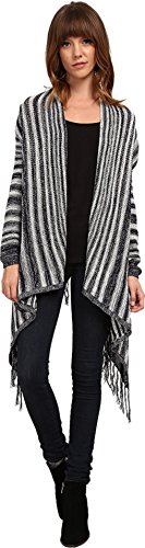 Lightweight sweater knit cardigan with allover stripe, front pockets and self fringe on bottom hem.