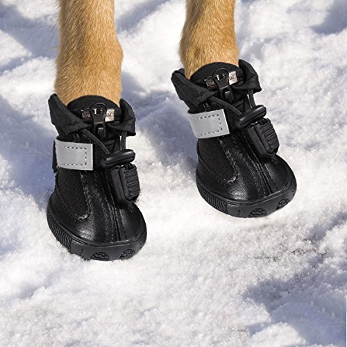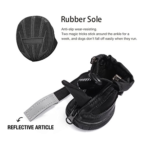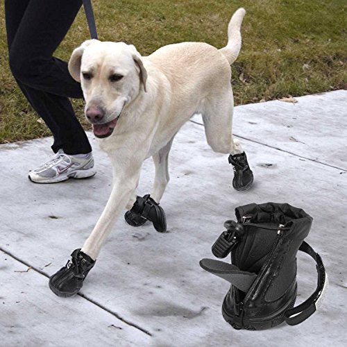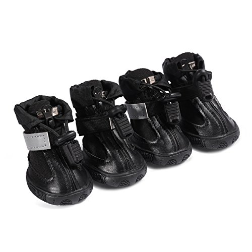 -. Title : LESYPET Dog Boots Waterproof Shoes for Medium to Large Dogs with Reflective Velcro Rugged Anti-Slip Sole Black 4PCS