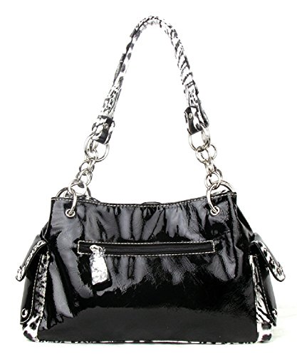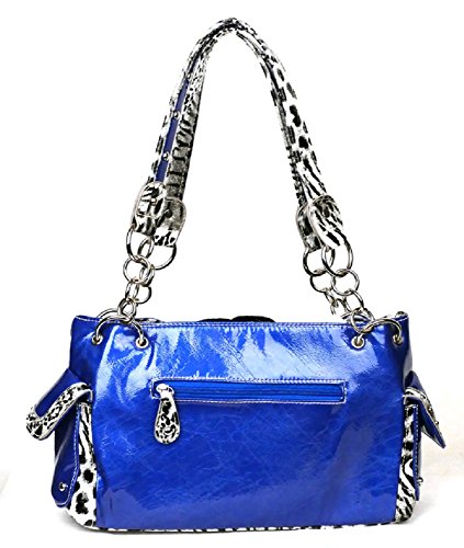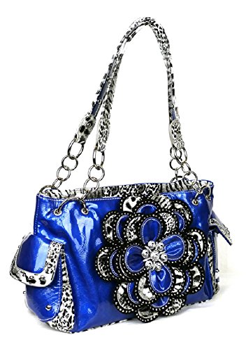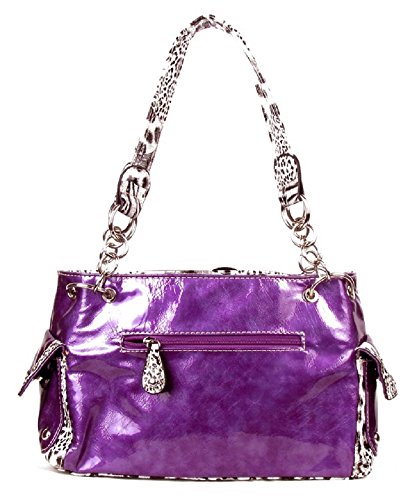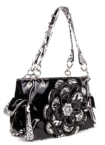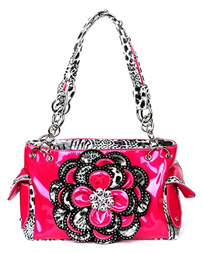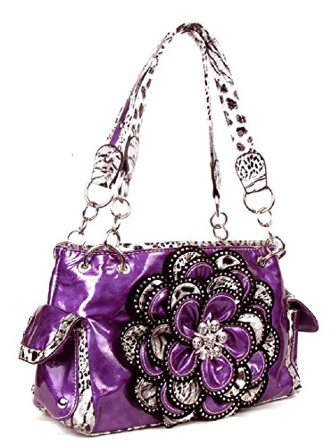 Product DescriptionCheetah leopard purse has a dazzling flower decorated with rhinestones. It is made of a shiny leatherette.0