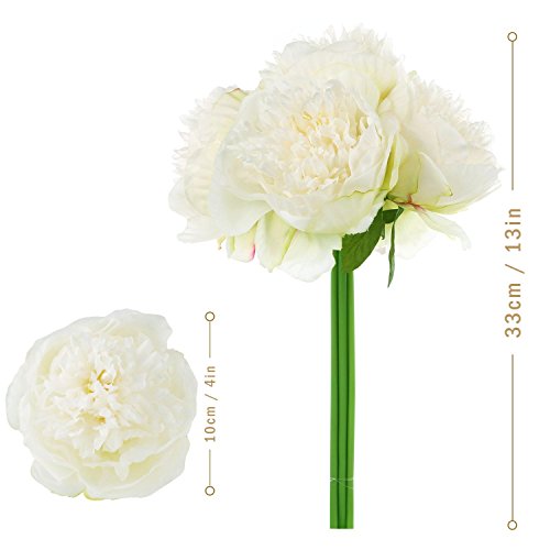 Silk Peony Bouquet 5 Heads Milk White SOLEDI Artificial Fake Flower Bunch Bouquet Bridal Bouquet Wedding Living Room Table Home Garden Decoration
