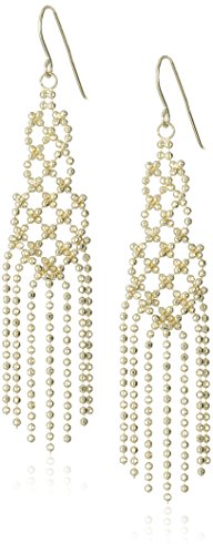 -. Feature : Elegant statement earrings featuring chandeliers crafted from strands of diamond-cut gold beads / Shepherd's hook backings / Domestic