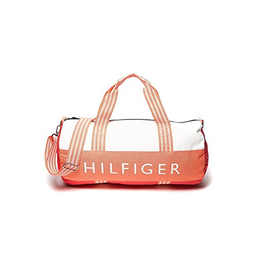 TOMMY HILFIGER COLORBLOCK SIGNATURE DUFFLE BAG CORAL WHITE