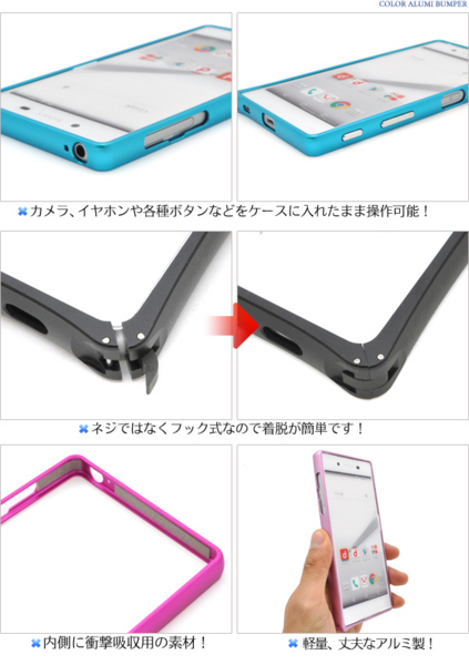 軽量で頑丈なアルミ素材のXperia Z5専用バンパーケース。
