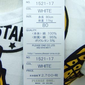 | 【ベビー服・子供服のプリーズワン】 ベビー・キッズからジュニアまで幅広いサイズを取り扱っております。 ポスター、ラスクをはじめ人気のスポーツブランドも取り扱っています。アウトレット 訳あり商品 季節セール 送料無料商品などお得なコーナーや入園入学準備 お祝い プレゼント カジュアル服 インポートなどの子供服が揃っています。 ●全国一律送料540円(税込) ●5,400円(税込)以上お買い上げで送料無料! ●メール便 164円(A4サイズ厚さ2cmまで) 82円(厚さ1cmまで) 【取扱いサイズ】 60cm/70cm/80cm/90cm/95cm/100cm/110cm/120cm/130cm/140cm/150cm/160cm 10cm/11cm/12cm/13cm/14cm/15cm/16cm/17cm/18cm/19cm/20cm/21cm/22cm/23cm XXS/XS/S/M/L/XL US:2T/3T/4/5/6/7/8/10 大人サイズ アダルトサイズも取り扱っています。 |