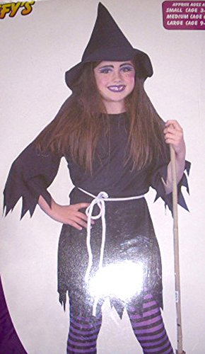 Product Description The Black Witch costume includes the witch dress, hat and belt. This costume is a girls size large for 9-12 years 59" height. All of our items are new in manufacturer packaging. 0