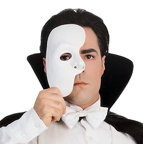 -. Binding : Apparel -. Brand : Rubie's -. Color : Multi -. Department : mens -. Feature : Phantom of the opera mask / Iconic style covers half of the face / One size fits most adults / Look for coordinating phantom of the opera costumes and accessories by rubie's / Rubie's offers holiday and novelty costumes and accessories in sizes and styles for the entire family -. Genre : Masks -. IsAdultProduct : 0 -. Label : Rubies Costumes - Apparel -. Manufacturer : Rubies Costumes - Apparel -. PackageQuantity : 1 -. ProductGroup : Apparel -. ProductTypeName : ADULT_COSTUME -. Publisher : Rubies Costumes - Apparel -. Studio : Rubies Costumes - Apparel -. Title : Rubie's Costume Co Men's Phantom Of The Opera Mask
