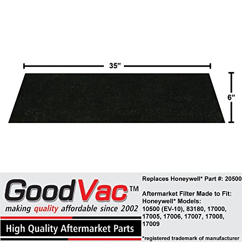 - One aftermarket Honeywell 20500 True H13 HEPA filter with one Activated Charcoal Odor Absorbing Pre-fillter made by GoodVac. High quality aftermarket HEPA filter designed and manufactured by GoodVac.