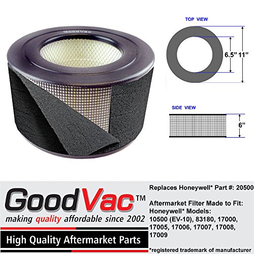 Honeywell Replacement 20500 HEPA Air Purifier Filter with Odor Absorbing PreFilter fits 10500 EV-10 by GoodVac