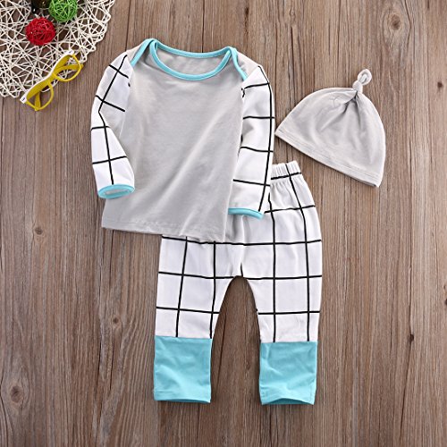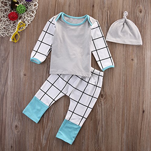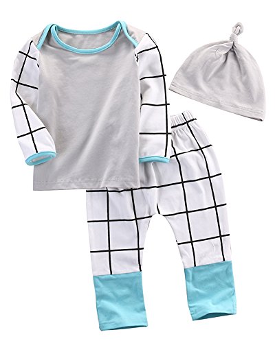 -. Binding : Apparel -. Brand : Moore -. Color : White -. Department : unisex-baby -. Feature : Material:cotton blend / Fit for 0-18 Months Baby / Please ignore the estimated delivery date,it usually takes 8-15 days for delivery / Perfect gift for Baby Shower, Mommy & Daddy And a perfect outfit for your little Baby! / Machine wash cold with like colors -. PackageQuantity : 1 -. ProductGroup : Apparel -. ProductTypeName : SHIRT -. Title : Moore 3PCS Newborn Kids Baby Boy Girl Outfit Clothes T-Shirt Tops+Pants Trousers+Hats