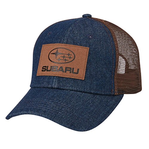 Binding : Apparel Product Description Neat new hat from Subaru. ? Cotton denim front with polyester mesh sides and back ? Plastic snap closure ? Import ? Embossed simulated leather patch ? Denim/Brown From subaru not some aftermarket source. check out our ebay store for other hats sweatshirts and oem subaru parts 0