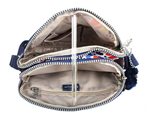 Don't be fooled by its petite size--this bag will keep you supremely organized with its dual zip compartments, key clasp and slip pocket. Dimensions: 8.75" x 7.75" x 5" Weight: 0.62 lbs