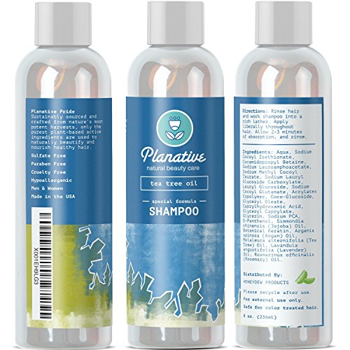 -. Binding : Health and Beauty -. Brand : Planative -. EAN : 0806810848319 -. Feature : REDUCE DANDRUFF with pure tea tree essential oil shampoo and conditioner set. Scientifically formulated to gently eliminate dandruff flakes and replenish dry weak and brittle hair for better hair growth. / ITCHY SCALP RELIEF reduce scratching itching and flaking with soothing essential oils. Anti Dandruff & moisturizing blend nourishes scalp and helps prevent hair loss and shedding to keep hair full and thick. / IMPROVES HAIR'S APPEARANCE therapeutic scalp treatment balances scalp and helps hair to look and feel soft smooth and absolutely radiant. Benefits all hair types including straight wavy & curly hair. / PACKED WITH VITAMINS Jojoba Argan Oil Shea Butter Organic Pomegranate Hibiscus Green Tea Sea Buckthorn Silk Amino Acids Botanical Keratin and Lavender are full of vitamins minerals and antioxidants. / MONEY BACK GUARANTEE chemical free, paraben free, and cruelty free ingredients making it great for men and women with sensitive skin and scalp. Take natural hair care to the next level! -. IsAdultProduct : 0 -. Label : Honeydew -. Manufacturer : Honeydew -. MPN : PLT-Tea-Tree-Oil-Set -. PartNumber : PLT-Tea-Tree-Oil-Set -. ProductGroup : Beauty -. ProductTypeName : BEAUTY -. Publisher : Honeydew -. Studio : Honeydew -. Title : Pure Tea Tree Oil Healing Shampoo and Conditioner Set Anti Dandruff Treatment for Women and Men with Itchy Scalp Weak Hair - Sulfate Free Formula for Healthy Hair Growth color treated Hair -. UPC : 806810848319
