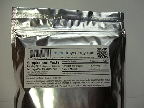 Myriad Mycology Lion's Mane Mushroom Powder 16oz or 1lb, Made in USA / Hou Tou Gu, 456g